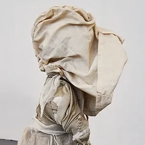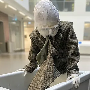 The puppet-like sculpture lends itself to installation within theatrical ‘sets’, using furniture and props to create a dramatic other world.